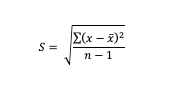 Typically represented by the symbol S. The formula for Sample Standard Deviation is: